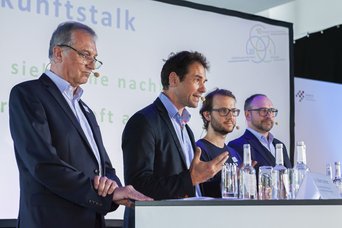 Den Blick nach vorne richteten der Grünen-Landtagsabgeordnete Martin Stümpfig, Nachhaltigkeitsforscher Prof. Dr. Frank Ebinger von der Technischen Hochschule Nürnberg/Nuremberg Campus of Technology, IHK-Geschäftsbereichsleiter Innovation und Umwelt Dr. Robert Schmidt sowie Elektrotechnik-Student Paulus Guter (FAU). Sie diskutierten darüber, wie eine nachhaltige Energiezukunft aussehen könnte. Trotz unterschiedlicher Hintergründe waren sich die Diskutanten in vielen zentralen Punkten einig – die Lösung für eine erfolgreiche Energiezukunft liege nicht in einer einzigen Technologie, sondern dem Zusammenspiel von skalierbaren Schlüsseltechnologien und der Etablierung robuster Wertschöpfungsketten. Eine nachhaltige Energieversorgung bis zum Jahr 2050 zu schaffen, sei eine gesamtgesellschaftliche Herausforderung, aber machbar. Dazu müssten alle Akteure eingebunden und die Grenzen von Technologie und Akzeptanz ausgelotet werden.
